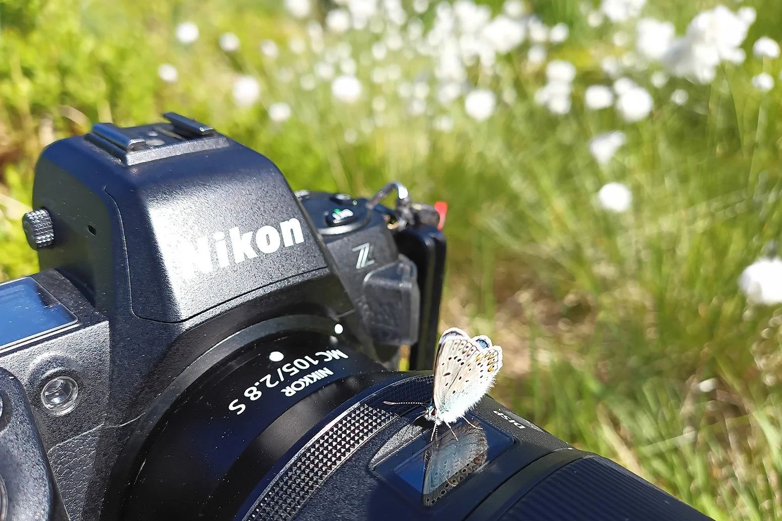 Doch unabhängig davon, waren die beiden Falter eine große fotografische Herausforderung. Denn sie hatten weniger Interesse am Posieren, als vielmehr, von mir zu Naschen. Immer wieder landeten sie auf meiner Haut und holten sich die Elektrolyte… Dankbar, dass dies ohne Stechen und juckende Folgen ging, ließ ich sie gern eine Weile gewähren und amüsierte mich, als sie sich sogar an der Kamera versuchten (siehe unten).